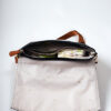 Die Tasche verfügt über einen langen Riemen und eine kleine Handschlaufe, sodass Sie sie flexibel so tragen können, wie es Ihren Bedürfnissen entspricht. Der lange Riemen ermöglicht es Ihnen, die Tasche quer über den Körper zu tragen und die Hände frei zu haben, während die Handschlaufe perfekt ist, um die Tasche in der Hand oder am Handgelenk zu tragen.