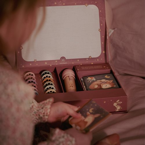 The projector flashlight has a sturdy wooden handle and works on batteries, so it can be taken anywhere. After the story, you can easily store the flashlight and all accessories in the beautiful storage box. Perfect for children who love to discover and experience stories.