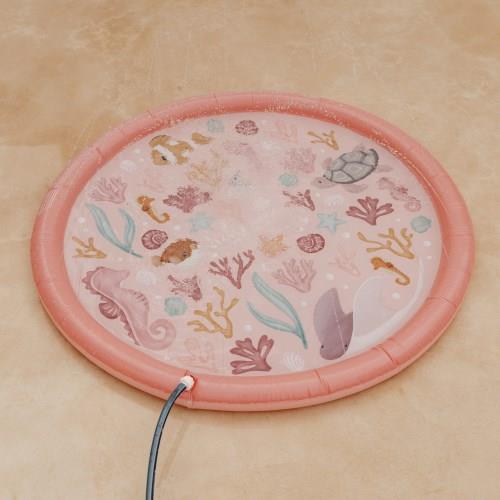 Spray and splash! On warm summer days, this water play mat keeps you cool and entertained. Walk right through the fountain, sit in the middle, invite your friends and play around and through it, or try to catch the water jets with your hands! Playing with water has never been so much fun! This pink water play mat is decorated with all the figures you can find in Ocean Dreams Pink. Simply attach the sprinkler to your garden hose and your little one will endlessly enjoy all the water fun.